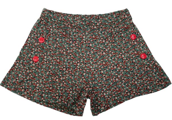 Falda short, tableado delantero con aplicación de botones y elasticado cintura posterior, elaborada en algodón full licra, suplex, jersey. Prenda práctica, cómoda y fresca para lucirla en toda ocación.